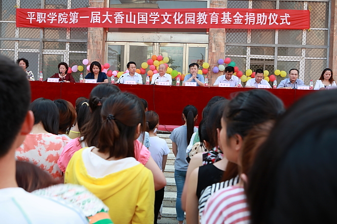 和煦的春风吹开校园希望的种子,宽厚的巨手托起学子求知的渴望。5月27日,平顶山工业职业技术学院第一届大香山国学文化园教育基金捐助仪式在学院综合馆前举行.大香山国学文化园教育基金理事长李凌云、大香山国学文化园教育基金理事会副秘书长朱孝方、平顶山中信银行行长刘娟、大唐恒丰投资咨询管理有限公司常务副总冯会伟、平顶山工业职业技术学院院长任文杰、副院长李树伟、教务处处长姚新兆以及艺术学院的领导与师生四百余人参加了此次活动,捐助仪式由艺术学院院长彭艺娟主持。