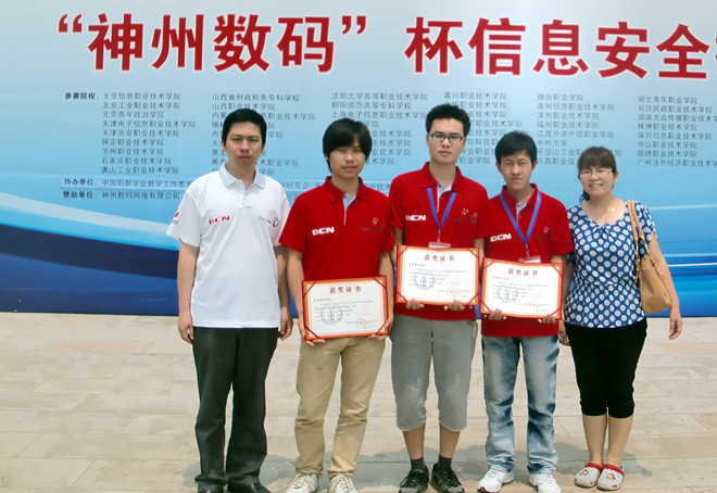 本网讯(王怀玲)6月25至28日,备受关注的2013年全国职业院校技能大赛决赛在天津举办,由我院计算机与软件工程学院朱俊亭、苗吉印、刘旭三名学生组成的 “河南二队” ,经过激烈角逐,荣获“神州数码” 杯信息安全技术应用大赛团体“三等奖” 。