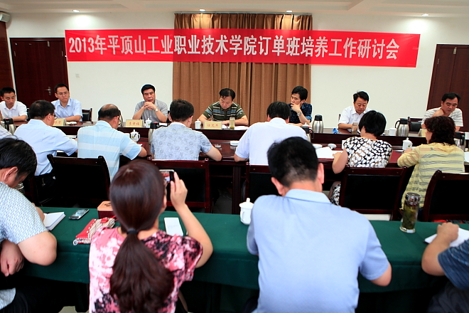 做为高等教育大众化的构成要素,高等职业教育业已占据“半壁江山”,在就业形势愈加困难的当前,高等职业教育发展何去何从?通过校企结合途径进行人才培养或成为高职教育不可或缺的基础性条件。为持续提升教育质量,培养高素质技能人才。7月17日,我院召开2013年订单班培养工作研讨会。学院领导任文杰、李幸福、李树伟、刘翱翔以及各教学系部负责人等参加会议。会议还特邀中国平煤神马集团人力资源部部长王利民、订单合作企业代表等参加研讨会。会议由副院长李幸福主持。