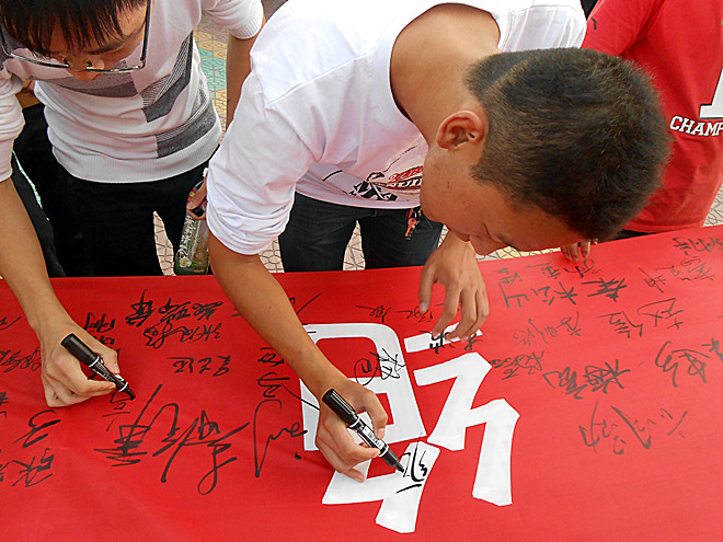 10月10日,我院学生处组织2013级近千名新生在升旗广场举行“拒绝烟草,珍爱生命”签字仪式”。