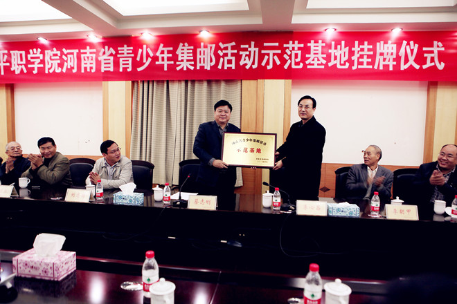 11月13日上午,“河南省青少年集邮活动示范基地”挂牌仪式在我院举行。平顶山市邮政局副局长李新昌宣读省集邮协会批示文件并向学院授牌。我院成为我省高校首家“河南省青少年集邮活动示范基地”。