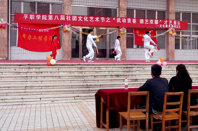 为提高广大学生的身体素质和艺术修养,丰富学生的课余文化生活,值此学院第八届社团文化艺术节之际,由学院团委、社联主办,文化教育部团总支、电力工程学院团总支共同承办的“武动青春,德艺双馨”才艺展示活动于11月15日在学海英姿广场拉开帷幕。