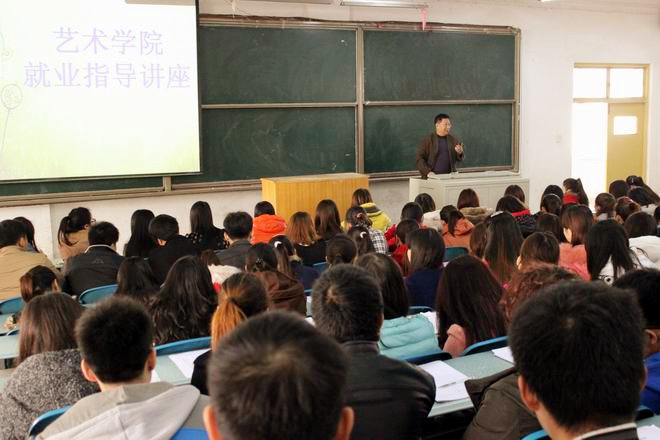 近日,艺术学院在2号教学楼601教室为该院11级全体学生举办了就业指导讲座,邀请就业处副处长薛大平和副处长席红岩主讲。
