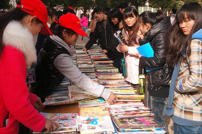 11月12日,我院第八届社团文化节之第五届图书交换活动在学院2号楼东侧开展了以“知识传递,爱心接力”为主题的第五届图书交换的活动,以书换书,以书会友,为同学们创造一个良好的读书平台。