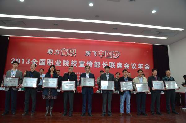 以“助力高职 放飞中国梦”为主题的2013全国职业院校宣传部长联席会议年会于11月20日~22日在广东佛山举行。来自全国100多所高职院校的180多名代表共聚一堂,学习解读党的十八届三中全会精神,交流分享教育教学改革的前沿动态,研究探讨高职院校的社会声誉管理之道。会上,我院被评为“全国就业竞争力示范院校”荣誉称号。这是我院自2005年以来连续8年获“河南省大中专毕业生就业工作先进单位”称号,2010年荣获“全国普通高校大学生就业工作先进集体”称号,2011年荣获“河南省普通高校就业工作评估优秀单位”称号之后,我院就业工作取得的又一全国性荣誉。