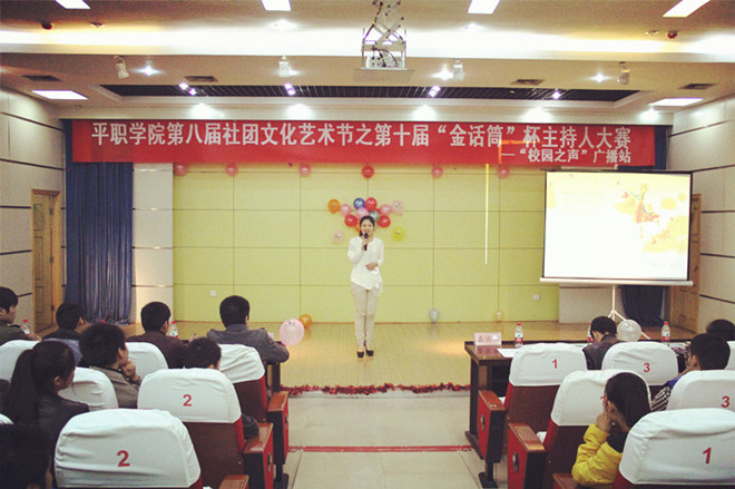 小小的梦想,演绎着各自的精彩;同样的舞台,绽放出不同的青春!近日,第八届社团文化节之“校园之声”广播站第十届“金话筒”主持人大赛在图书馆报告厅圆满落下帷幕。文化教育部团、国际合作学院和艺术学院老师应邀出席大赛,学生社团负责人担任了本次比赛的评委。经过激烈角逐,电力工程学院的曹新欣同学摘得桂冠;蔡妍、肖雪获得二等奖;周准准、张迪获得三等奖;宋佳音、陈震、刘婷婷、王柯获得优秀奖。