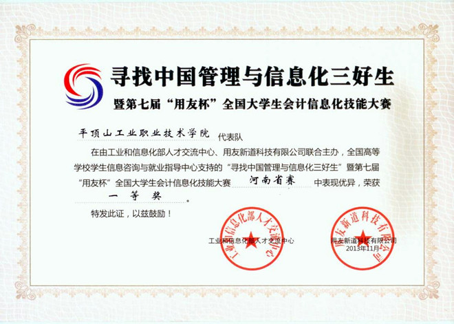 12月5日,第七届“用友杯”全国大学生会计信息化技能大赛河南省赛(全国决赛)结果揭晓。我院代表队荣获团体一等奖,刘爱针等三位指导老师荣获个人一等奖,张培莹、涂倩两位同学荣获个人一等奖,赵爽、吴云等7位同学荣获个人二等奖。