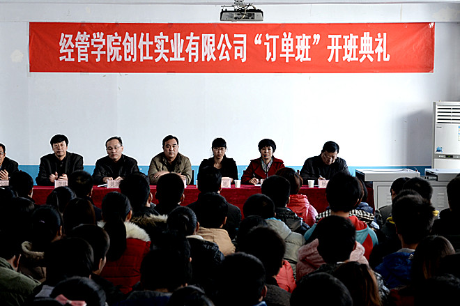 12月11日,惠州创仕实业有限公司与经管学院工商企业管理专业合作的“创仕订单班”开班典礼在就业处四楼会议室举行。学院副院长刘翱翔、惠州创仕实业有限公司人力资源部主管赵旭、教务处、就业处、经管学院教师及首届订单班45名学生参加。