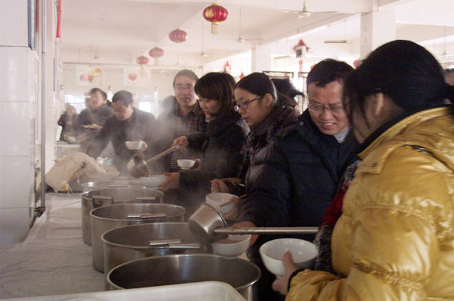 学院发展,育人为本;教育大计,教师为本。关爱师生员工,服务学院发展,是后勤服务工作的神圣职责,师生满意是后勤人永恒的追求。饮食公司员工将对教师们崇高的敬意和对学生深深的爱都熬制到这碗浓浓的腊八粥里,让他们以快乐的心态、优异的成绩迎接新春佳节,这是对老师和同学们最美好的祝福。(武占领)