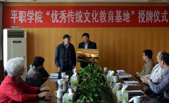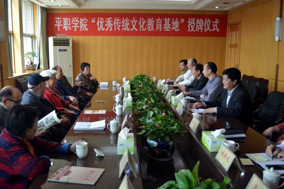 在当日市炎黄文化研究会、市信息协会共同举办的授牌仪式上,平顶山市炎黄文化研究会会长、原平顶山矿务局局长梁尤平在讲话中,对我院坚持在全校师生中抓好优秀传统文化教育所取得的成果给予充分肯定。他指出,平职学院在办学的过程中,高度重视对传统文化的教育,促进了全校师生员工的思想道德素质的提高,培育像中国大学生自强之星标兵李彬彬、“中国好人”“中原孝贤”范长春等一大批道德模范人物,有力地推动了学院的教育教育,为地方经济社会发展做出了积极的贡献。