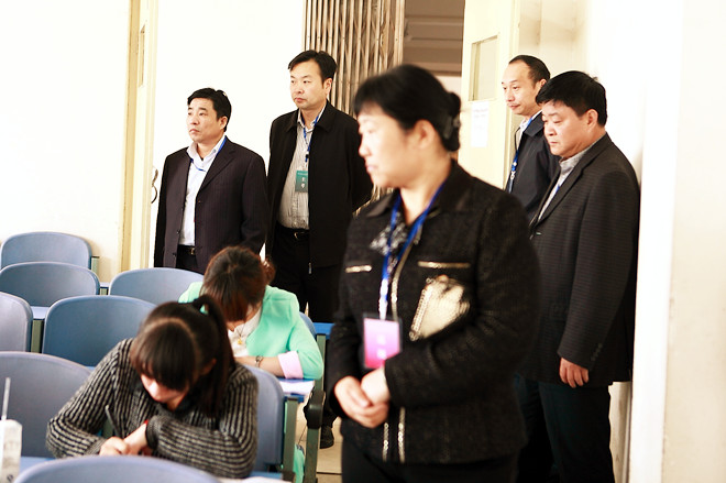 我院党委书记蔡志刚、院长任文杰,市招办副主任邓鸿雁、张爱民,市招办普招科科长黄多多一同到考场进行巡视。