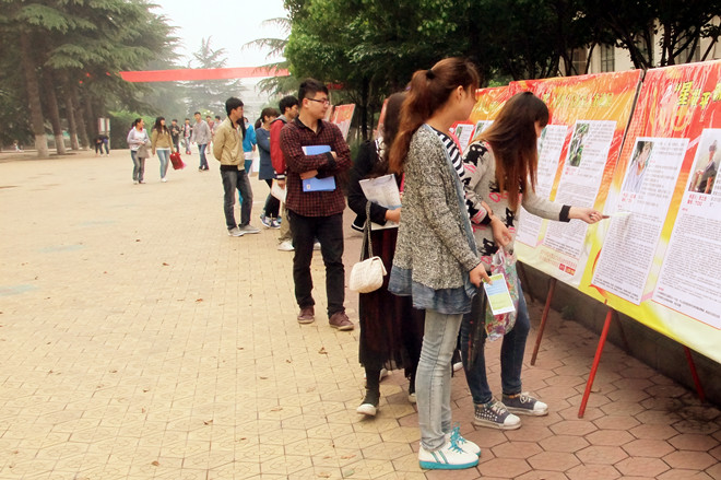 近日来,二号教学楼门前的路上摆放的排版前不时就会挤满人,原来他们是在阅读和学习“十大校园之星” 候选人的先进事迹。据负责本次活动的团委老师说,校园之星评选活动,每两年进行一次,目的是进一步推动校园精神文明建设,深入挖掘学生中的先进典型,引导和激励广大学生向身边的榜样学习,争做新时代的优秀大学生。