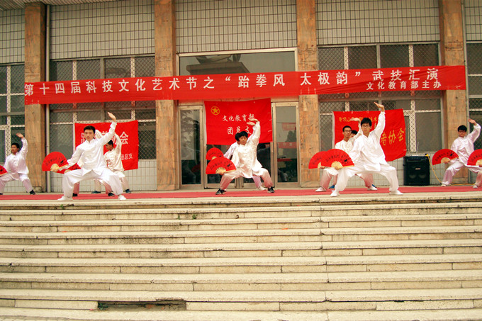 演出的节目主要有太极扇、太极拳以及跆拳舞、跆拳道品势表演等。通过此次活动,弘扬了中华民族的武术文化精神,同时也向全院师生展现我们武术类社团的魅力与当代大学生的青春与活力。(邵超)