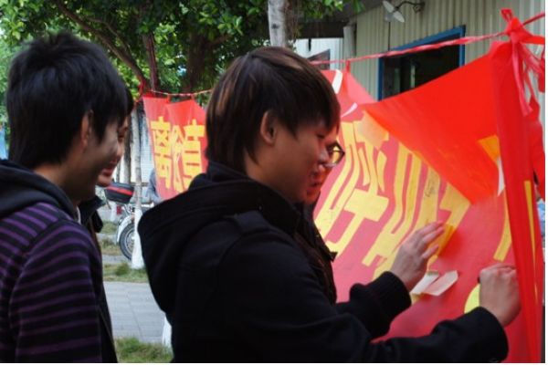 此次活动吸引了大量学生参与到我们禁烟的行列来,由团干派发便利贴让同学们写下自己的远离烟草的宣言。健康,随烟而逝;病痛,伴烟而生!让我们远离烟草,为文明和谐的校园环境贡献一份力量!(许培)