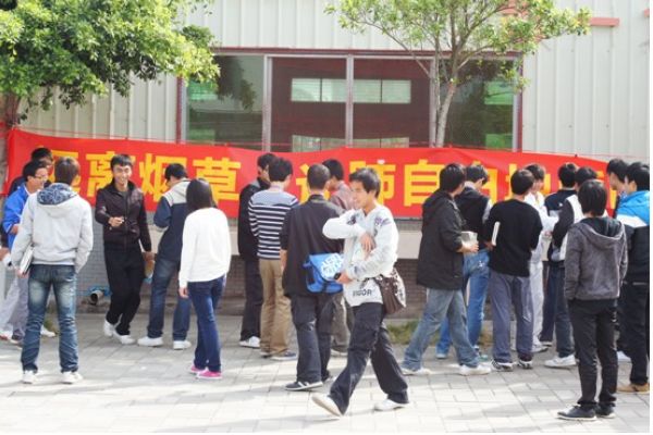 5月30日,在第27个世界无烟日来临之际,我院团委在2号楼门口举办了主题为“远离烟草,创建文明校园”的大型禁烟宣传活动。