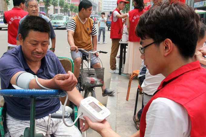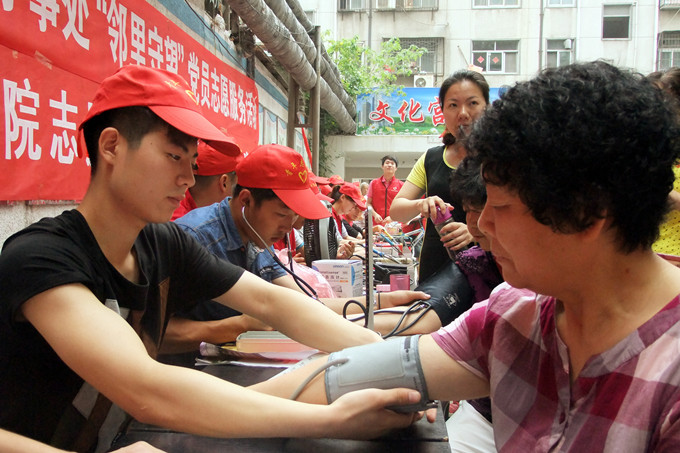 “平职学院的大学生志愿者真的太好了,给我们送来这么多便利!”刚刚测量过血压的西杨村李俊英阿姨说道。