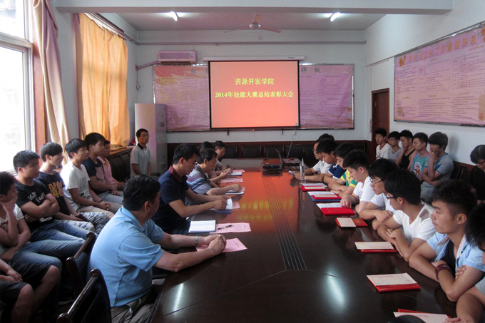 6月20日,资源开发学院在教务处四楼会议室召开2014年技能大赛总结表彰大会,该院负责人,教研室主任、指导教师、参赛队员及学生代表参加。