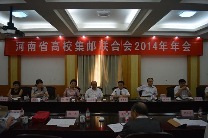 6月21日,河南省高校集邮联合会2014年年会在我院二楼会议室召开,学院党委书记蔡志刚参加年会。中华全国集邮联合会常务理事、河南省集邮协会副会长、省高校集邮联合会名誉会长、河南省邮政管理局原局长杨汉振,郑州升达经贸管理学院院长、省邮协副会长、省高校集邮联会长崔慕岳,河南师范大学党委书记、省高校集邮联副会长周铁项以及河南大学、河南农业大学、河南师范大学、河南科技大学、中原工学院、河南工程学院、郑州铁路职业技术学院、郑州升达经贸管理学院、平顶山工业职业技术学院、河南科技学院、三门峡职业技术学院等11所高校代表参加会会议。(工会)