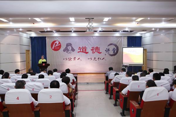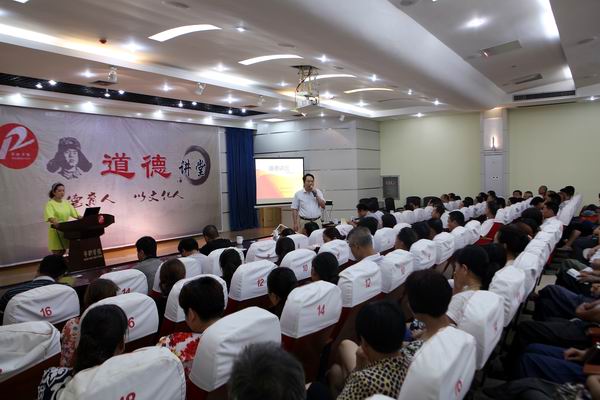 7月10日上午,以“学习模范\爱岗敬业”为主题的“道德讲堂”活动在学院图书馆报告厅举行。本次道德讲堂由物业公司党支部、饮食公司党支部承办,共有“唱一首歌曲、学一句经典、讲一个故事、谈一番感悟、做一个承诺、送一份爱心”六个环节。学院后勤总公司党总支书记张立新及物业公司、饮食公司全体职工参加了本次讲堂活动。
