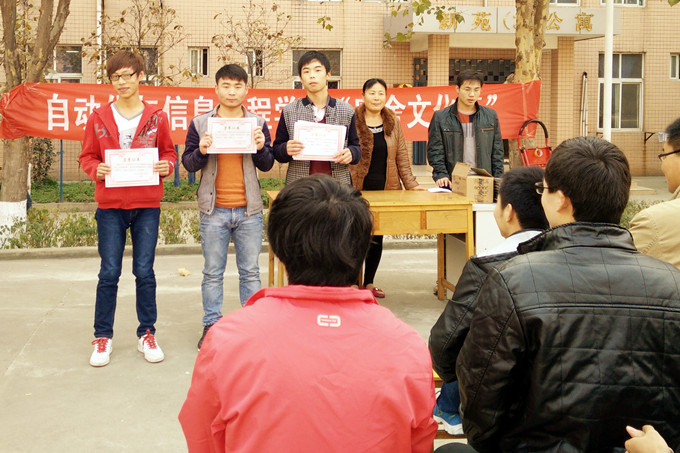 11月19日中午,自动化与信息工程学院在新苑生活区篮球场举办“温馨之家-文明宿舍评比活动”阶段表彰,3个五星级宿舍获得一等奖,6个四星级宿舍获得二等奖,12个三星级宿舍获得三等奖,宿舍管理员和辅导员老师为“文明宿舍”和“文明学生”颁发了荣誉证书和洗发水、记录本等奖品。