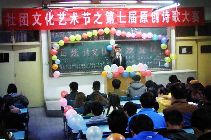11月20日晚19:00,文化教育部征途诗文协会在二号教学楼308教室举办“第七届原创诗歌朗诵大赛”。机械工程学院李贺龙获得了一等奖。