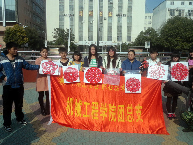 为丰富校园文化生活,激发我院师生对民间传统剪纸艺术的热爱,11月21日,学院团委、机械学院剪纸艺术协会在升旗广场举办了剪纸艺术比赛活动。