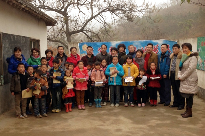 11月30日,李振华老师和和谐之声合唱团的几个人一起来到梨园希望小学看望这个小学的二十几个孩子。他们为孩子们带来了几百本课外书籍,作业本,几十本《弟子规》和《三字经》,物品有笛子,笔、书包等。上午,李振华老师为孩子们上了一节音乐基础课;下午,同行的老师为孩子们上了一节英语课,一节语文课。这是他们第二次到梨园希望小学看望孩子们。上一次是10月底,他们为这些家庭比较困难的孩子带去了学习用品。“我们计划一个月去看望孩子一次。”李振华老师说。