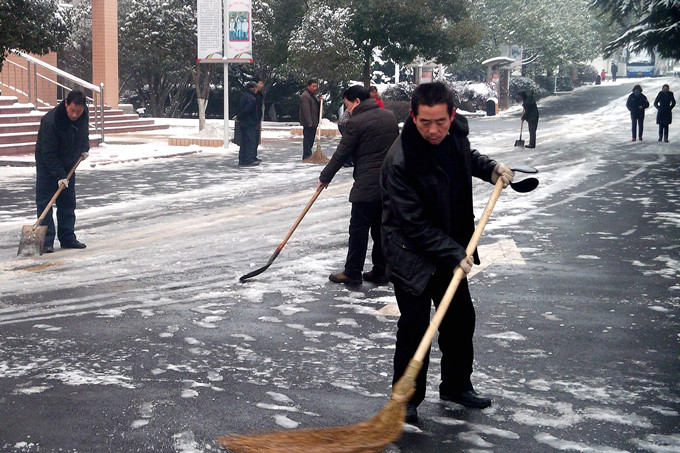 2015年的第一场雪带着春的信息飘然而至,使大地万物银装素裹,变为童话般的世界。但道路上厚厚的积雪也给出行的路人带来了不便。为畅通交通,方便行人出行,物业公司干部职工第一时间开展了义务扫雪活动,方便教职工出行。该公司员工不畏严寒,扫出了一条条干净畅通的大道。