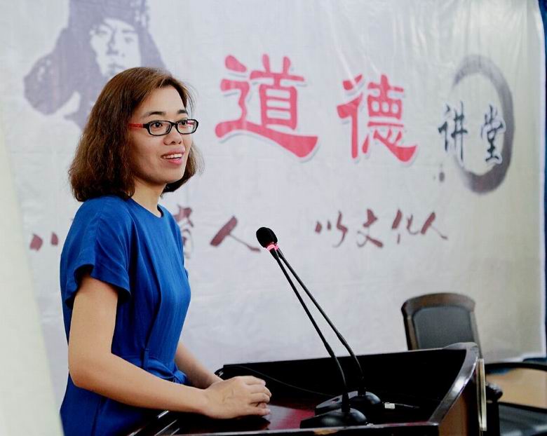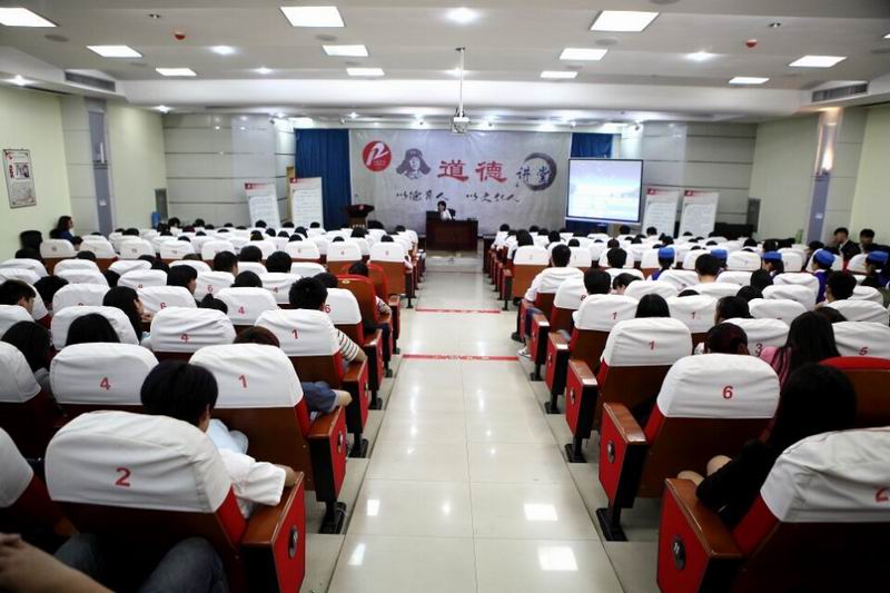 “道德讲堂”按观看一段公益广告、诵一段中华传统经典语录、讲述一个传统美德故事、讲述道德修养、唱一首道德歌、五个环节逐一进行。活动刚开始,首先看了一段感动心灵的公益广告,在诵经典环节,诵读了中华传统经典语录《荀子·劝学》,在讲述美德故事环节中,彭艺娟院长从中华民族道德的内涵徐徐道来,她讲“仁”、“礼”及“道”与“德”的社会价值。利用实例讲解了现今社会的价值观,用我院真人实事,范长春助人为乐、孝敬母亲、积极进取。李彬彬勤奋好学,勇于拼搏的精神阐述道德的高尚的真正意义。同时也告诉同学们培养高尚的道德情操该如何做宣讲了范长春老师勤俭养家、积极进取的先进事迹。最后,以一首《明天会更好》歌曲拉下帷幕。