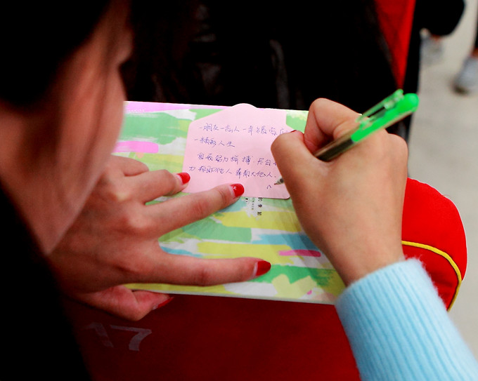 宣讲过程中,丁雪花讲到,做为我们平职学院的一名宿管阿姨,和孩子们接触的最多,我们的每一个微笑,为孩子们做的每一件事,不是代表我们个人,而是代表我们平职学院传递给来自四面八方的孩子们一份最真诚的温暖,让这些走出校园,参加工作的孩子们,回想在平职学院时,可以自豪地向别人夸耀,我们学校的阿姨,每天为我们所做的都是妈妈级的服务。为了学生的一切,一切为了学生,只要学校还需要我,我会一直在这个岗位上干下去,因为我非常地爱这份工作!更爱这些孩子们!讲述中,一次次热烈的掌声表达了在场每一位师生对丁雪花阿姨的点赞与敬意,丁雪花的故事打让他们再次感受到身边道德模范的力量。在“作一个承诺,送一份吉祥”环节,在场的老师、同学纷纷表达了对于道德模范的崇尚,对实践道德行为的理解,表示要以身边的模范为榜样,从点滴的小事做起,加强自身道德修养,不断传递道德正能量。在《奉献》悠扬的乐曲声中,在场的300余位师生把自己的心愿和祝福写在卡片上,由志愿者收集后制作成“心愿墙”,讲述我们身边的道德故事和道德感悟,让每一个人都成为道德的传播者、实践者和受益者。(魏宏伟)