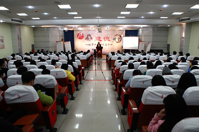 世界上有两种东西能够深深地震撼人们的心灵,一是我们心中崇高的道德准则,另一件是我们头顶灿烂的星空。活动按照“道德讲堂”的流程分别为:唱一首歌曲、讲一个故事、诵一段经典、做一个承诺、送一份吉祥等。活动在歌曲《牵手》中缓缓拉开帷幕。感动中国人物之一的平凡人物孟佩杰的事迹感动在场师生,该院院长李国英,教师朱珊等师生被她的先进事迹所感动忍不住留下激动的泪水。杨鸿杰老师带领大家诵读《弟子规》中入则孝选段,歌颂百善孝为先的经典传统美德,然后分享一下今天的道德感悟。15级营销专业学生马亚贞和王梦雅先后主动做出一个道德承诺。道德讲堂向大家赠送了道德能量卡,送上最真诚最美好的祝愿。