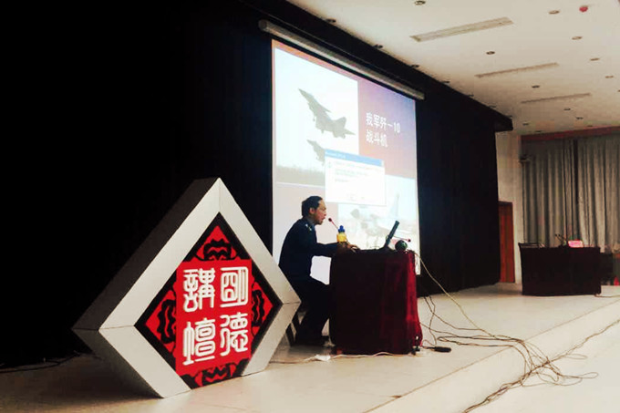 李国强教授是空军大校,六次荣获三等功,擅长国际热点问题及军事教学艺术研究与讲授,他的讲座绘声绘色,慷慨激昂,与同学们热烈互动,会场气氛不时掀起新的高潮。李教授从飞机的发明者莱特兄弟讲起,到中外空军战争史,空军英雄伟大事迹,现代化的空军武器装备,“9.3”大阅兵......把同学们带入空军这个神奇而又神秘的领域,展现了中国空军国家不畏牺牲自我,努力奋战的精神,学生们求知若渴,不肯错过一个细节。