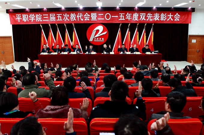 下午2点,会议继续。职工代表大会表决通过了《院长工作报告》、《学院2015年度财务决算情况的报告》。