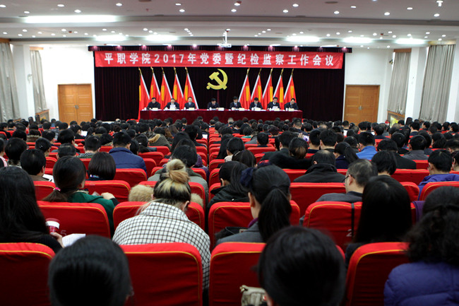 阳光明媚,风和日丽,今天上午8时30分,我院在2号教学大楼701召开平职学院2017年党委暨纪检监察工作会议。学院党委书记蔡志刚和学院领导宋伟毅、李树伟、李新玉、张立方、郭许平、刘翱翔、张立新等出席会议并在主席台就坐。蔡志刚作《学院2016年党委工作报告》。张立方作《精神文明建设工作报告》。学院党委常务副书记宋伟毅主持会议。全体党员干部职工参加会议。