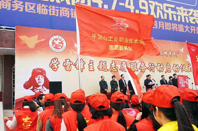 3月5日,由平顶山市文明办、共青团平顶山市委主办的平顶山市“创建全国文明城市 争当文明市民”学雷锋主题志愿服务行动启动仪式在平煤神马俱乐部举行。我院40余名志愿者参加了本次活动。 参加活动的学院志愿者们穿戴着印有学院志愿者标志的统一服装,用自己的实际行动向市民传达了“学习雷锋,奉献他人,提升自己”的志愿服务理念,引导广大市民自觉遵守社会公德,从我做起、从小事做起、从细节做起,大力弘扬志愿精神,积极倡树社会新风,传递社会正能量。参与活动的志愿者们表示,一定会将“向雷锋同志学习”的大旗扛起、传承,让雷锋精神永驻人间,为平顶山市创建全国文明城市,为学院精神文明建设贡献自己的力量。