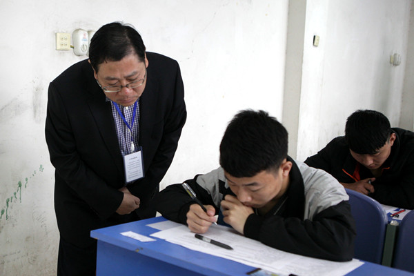 学院党委书记、主考蔡志刚巡视考场