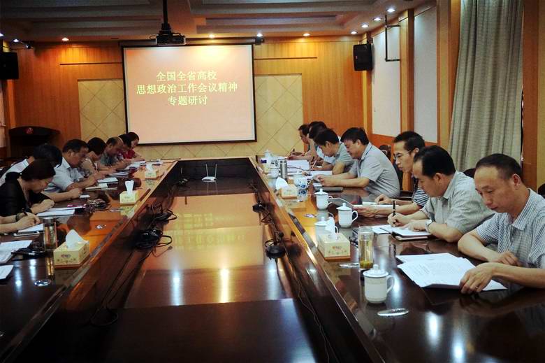 5月26日下午,院党委5月份中心组(扩大)学习会召开,就全国、全省高校思想政治工作会议精神进行第二次专题研讨。党委书记蔡志刚传达全省高校党委书记、院校长高校思想政治工作会议精神专题培训情况,并结合“两学一做”学习教育常态化制度化要求作专题辅导讲话。