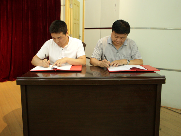 大圣科技(集团)公司副总裁李昌国、平顶山工业职业技术学院党委书记蔡志刚共同为创新创业实践基地签约。