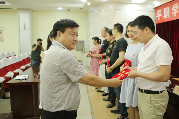 学院党委书记蔡志刚同志为平顶山双创孵化中心总经理李昌国、河南路凡电子商务有限公司董事长张拥军、平顶山红莲动画有限公司总裁王惠军、河南恩泽科技有限公司总经理冯文雅、河南邦客汇电子商务有限公司顶层设计师兼运营顾问李小毅、平顶山无界电子商务有限公司总经理丁风洒、平顶山跨境电商(中华商城)新媒体运营卢杏七位同志颁发创新创业指导师聘书。
