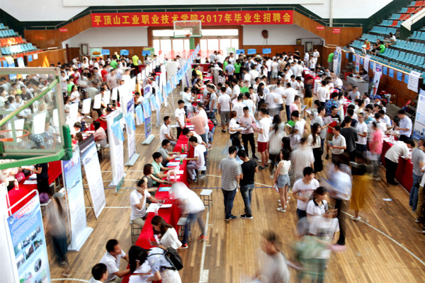 6月17日,平顶山工业职业技术学院成功举办2017年夏季毕业生双选会,共计有102家用人单位前来选拔我们2017届毕业生,本次招聘会共邀请了100余家企业单位,包括中煤国际工程、中光学集团、中兴、富士康、海信、中国平安等知名企业以及郑州、北京、苏州等省内外地的高成长性公司、企业,集团所属平煤隆基新能源科技、京宝焦化、瑞平热电厂等单位也安排了相应的招聘计划。招聘岗位涵盖机电、计算机、通讯技术、测绘、高护、自动化、服装工程、财会、市场营销、煤炭深加工等2324个就业岗位。900余名学生参加招聘会,当天签约意向的有722人。