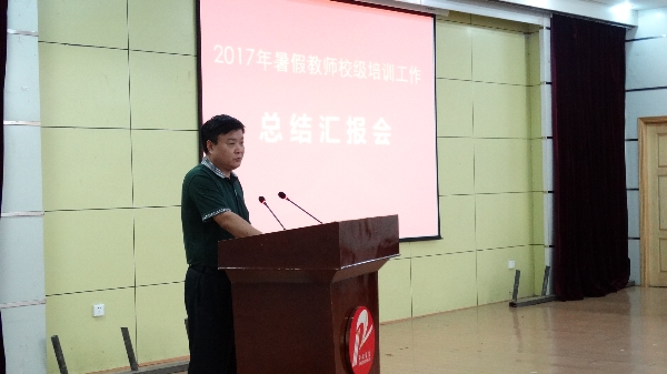7月28日上午,我院在图书馆报告厅举行2017年暑假教师校级培训工作总结汇报会,为期四周的暑期教师校级培训工作降下帷幕,学院党委书记蔡志刚聆听了汇报总结会、副院长李树伟主持了汇报会。