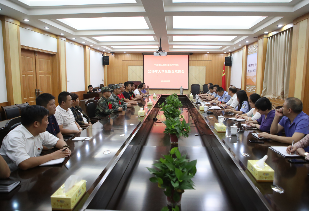 9月11日下午,学校在办公楼二楼会议室举行2019年大学生新兵欢送会,纪委书记李清锋,应征入伍新兵代表及各二级单位相关负责人参加欢送会。