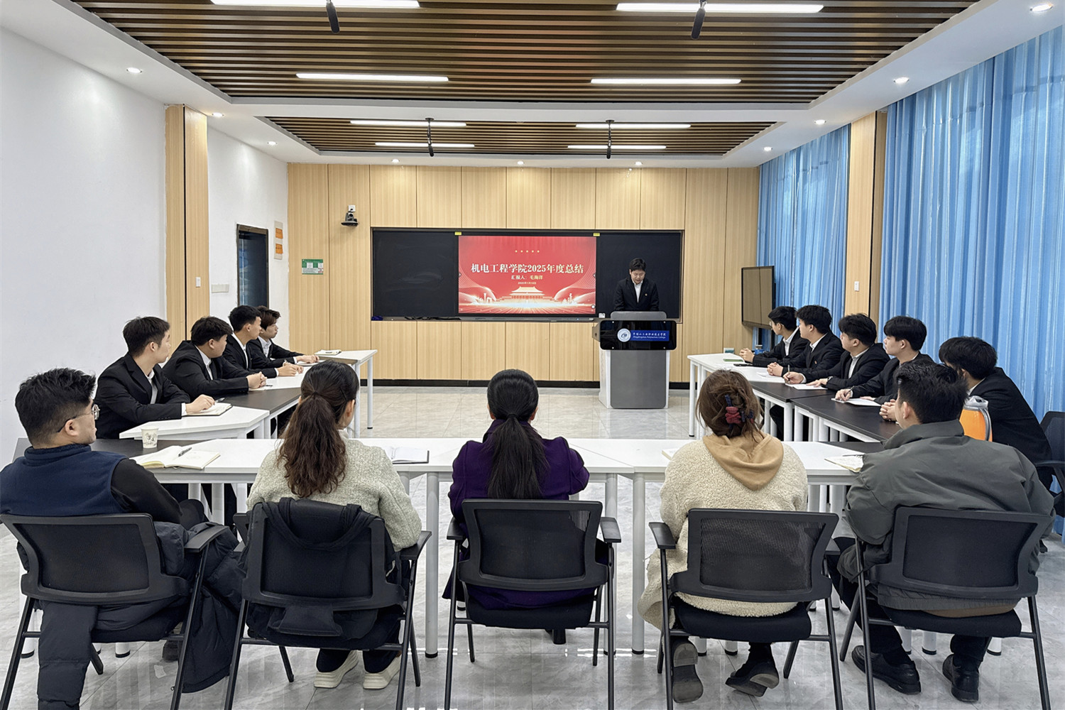 为全面总结本学期学生工作情况,1月16日,机电工程学院召开2025年学生干部汇报大会。学院负责人、学工负责人、团总支书记、部分辅导员,学生会主席团及各部门负责人参加会议。
