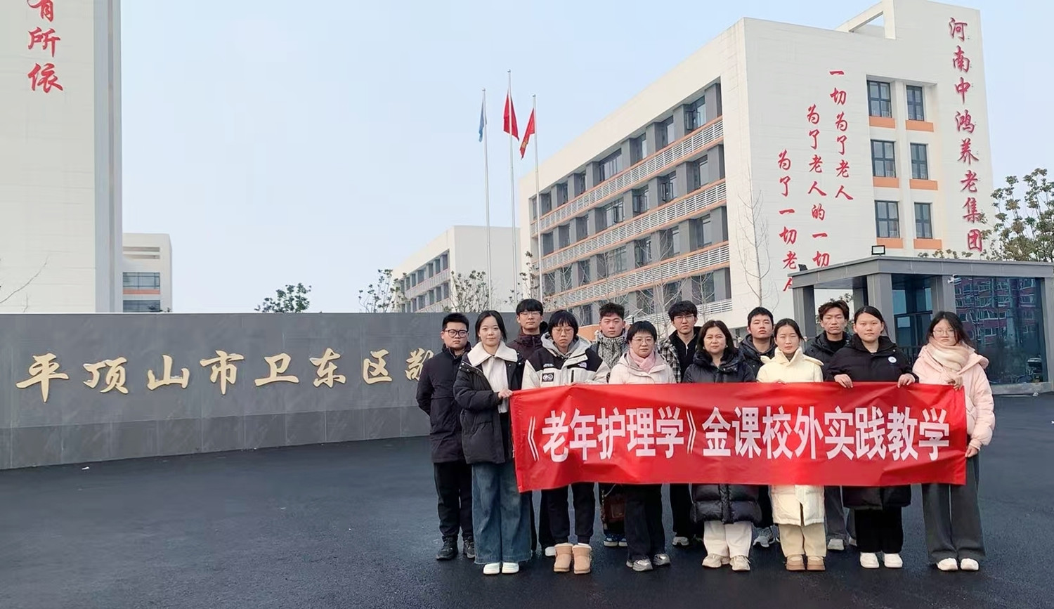 1月20日,护理学院金课教师团队带领学生前往平顶山卫东区养老院,开展校外实践教学,将老年护理课堂延伸至养老服务一线,促进理论与实践相结合。