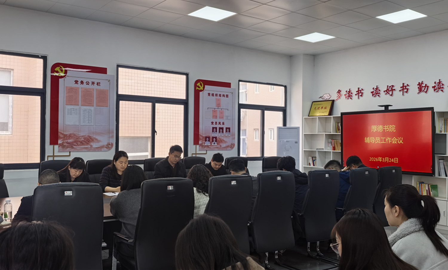3月24日,厚德书院在大学生党员服务总站召开2026届毕业生就业工作推动会。2026届毕业班全体辅导员参加会议。