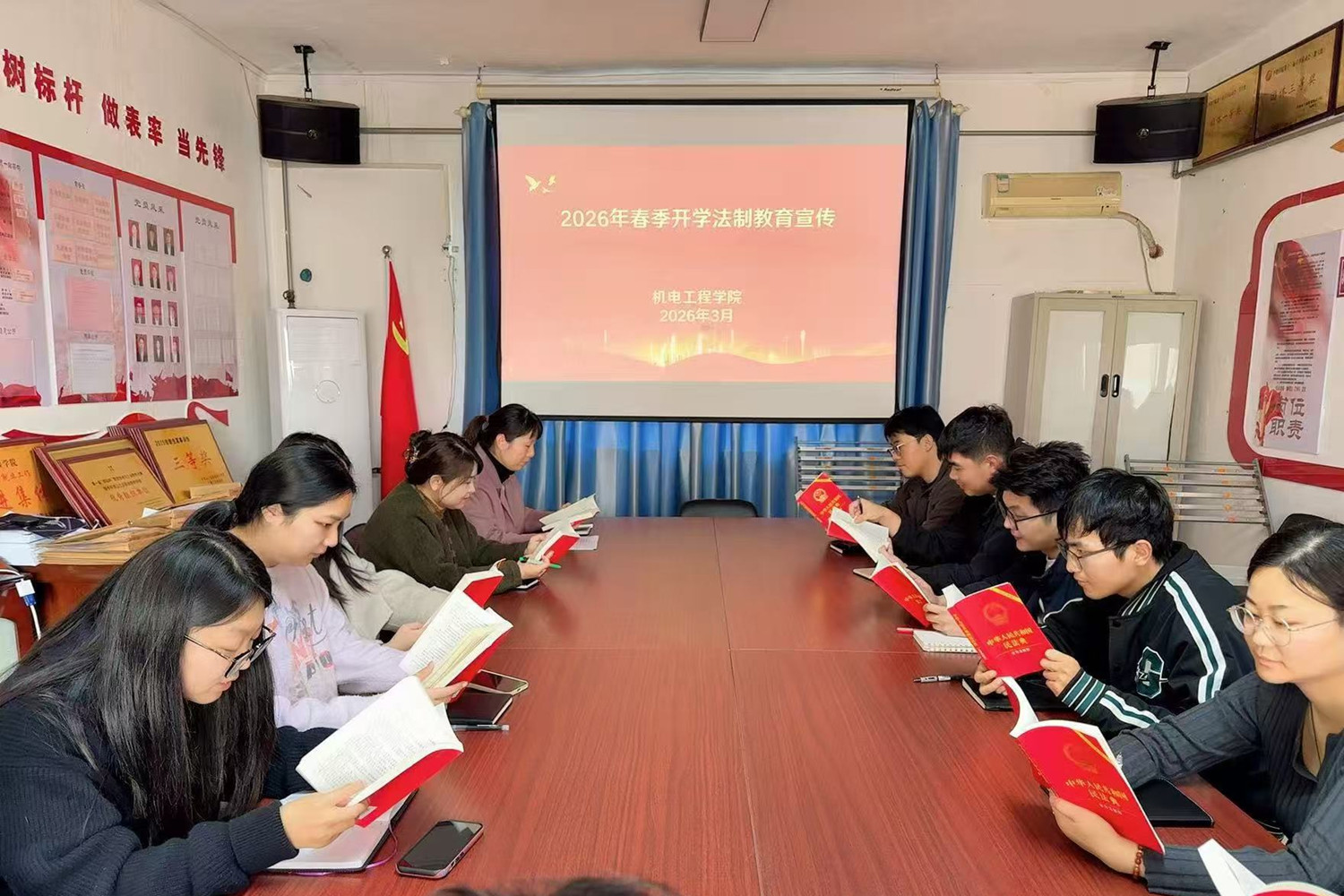 3月24日,机电工程学院组织开展法治教育宣传活动,学工负责人及全体辅导员围绕《中华人民共和国宪法》《民法典》等相关法律法规核心内容,结合工作实际,深入研读法律条文、交流学习心得。
