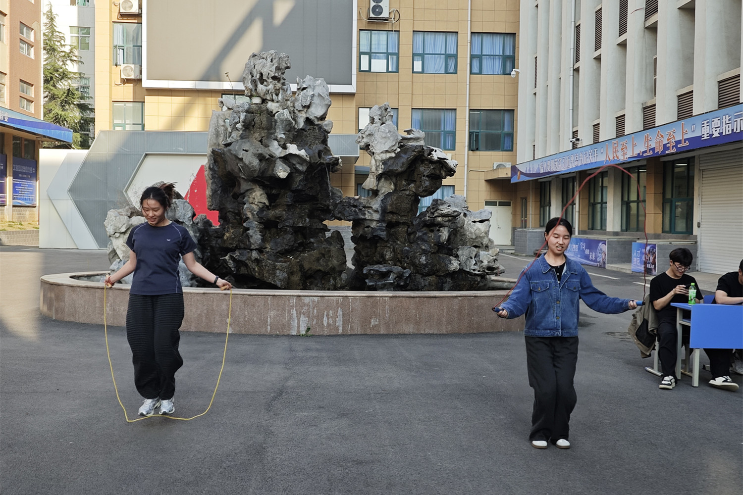活动现场气氛热烈、精彩纷呈。跳绳比拼环节格外引人注目,随着一声令下,同学们纷纷跃动起身,彩绳在手中飞速旋转,在空中划出一道道流畅而有力的弧线,“哒哒哒”的落地声清脆悦耳、节奏明快。大家身姿轻盈、步伐灵巧,屏息凝神、全力竞速,有的如飞燕掠空,轻快敏捷;有的稳扎稳打,耐力持久。绳子在脚下飞速穿梭,身影在阳光下跃动不息,充分展现了平煤学子敏捷的反应、良好的协调性与蓬勃向上的青春朝气,围观同学不时爆发出阵阵掌声与加油声。俯卧撑挑战赛则尽显青春力量,参赛选手们依次上场,俯身、撑地、下压,每一个动作都标准规范、沉稳有力。大家咬紧牙关、坚持不懈,不断挑战自我极限,用扎实的力量和坚韧的毅力诠释拼搏精神。无论是参赛选手全力以赴,还是围观同学加油鼓劲,现场处处洋溢着团结向上、奋勇争先的良好氛围,让简单的健身项目充满了激情与感染力。