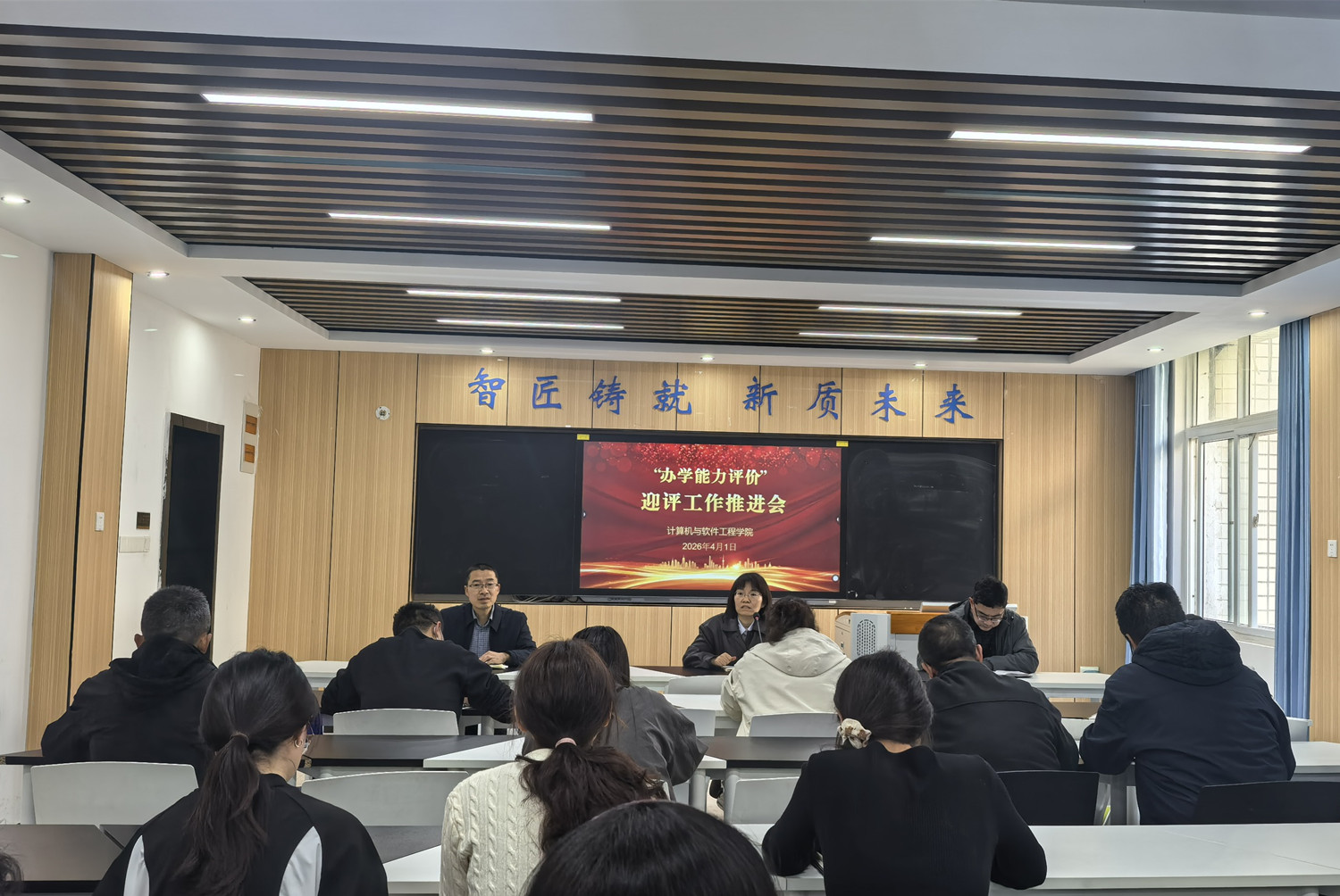 为落实学校关于河南省高等职业学校办学能力评价工作的部署要求,扎实推进迎评各项任务,4月1日,计算机与软件工程学院在人工智能产业学院201室,召开迎评工作推进会,学院全体教师参加会议。