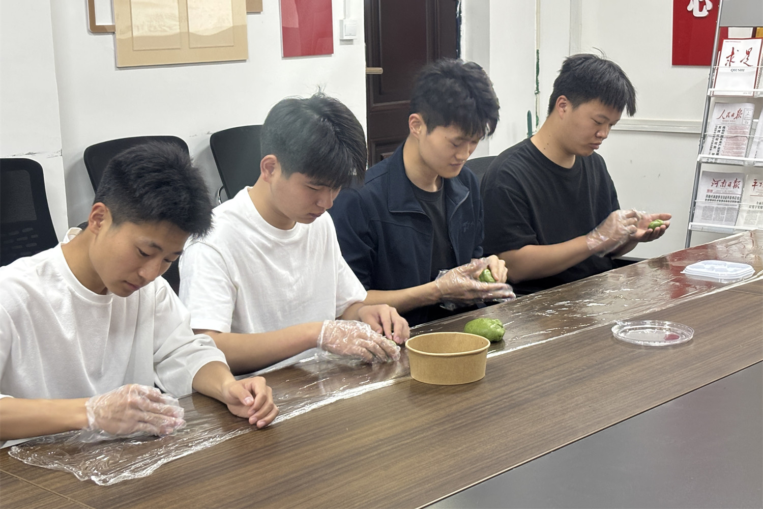 随后,青团制作环节将活动推向高潮。艾草泥、糯米粉、豆沙馅等食材整齐摆放,同学们纷纷挽起衣袖开始动手制作。初次尝试的同学手法略显生涩,但在相互帮助与交流中逐渐熟练起来。一个个青团在同学们手中成型,大家细细品尝亲手制作的青团,在软糯香甜中感受清明习俗,体会传统节日的文化内涵。