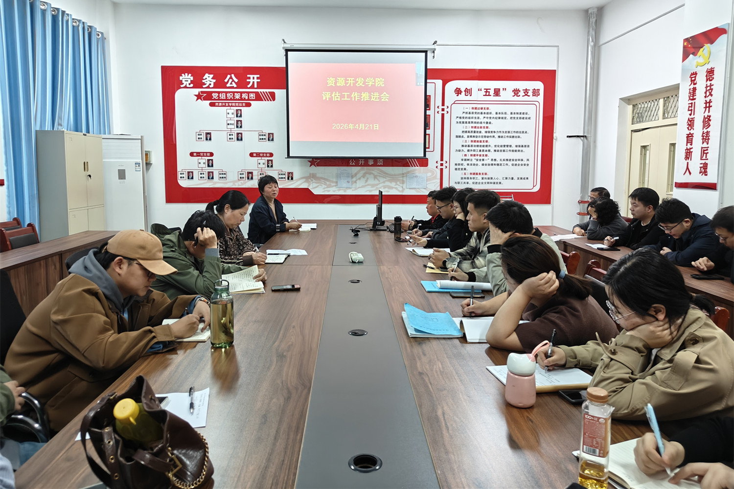 为深入落实学校关于迎评工作的部署要求,4月21日,资源开发学院采用线上线下结合的方式召开评估工作推进会。学院领导、全体教师参加会议。